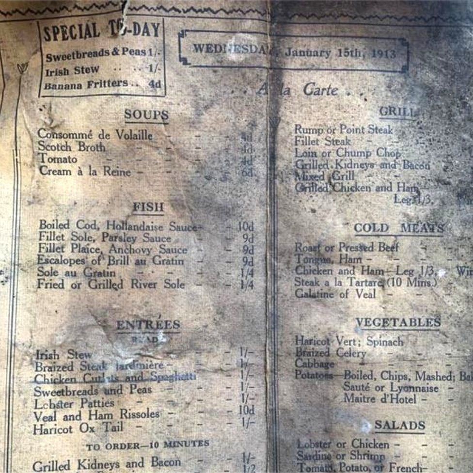 اكتشاف قائمة طعام تعود لعام 1913 في أحد مقاهي ليفربول
