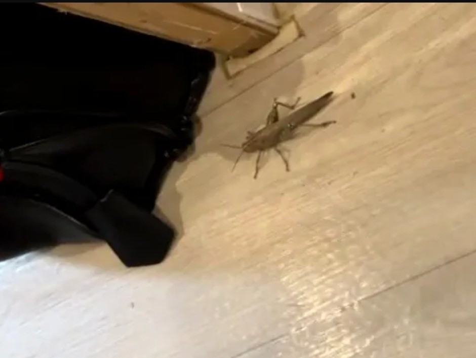 حيث اكتشفت البريطانية كيت بيتمان، حشرة الجراد بعد أن قفز من الكيس باتجاهها وزوجها وأطفالها الثلاثة، في حادثة وصفوها بالمرعبة، وفقا لصحيفة ذا صن "The Sun".