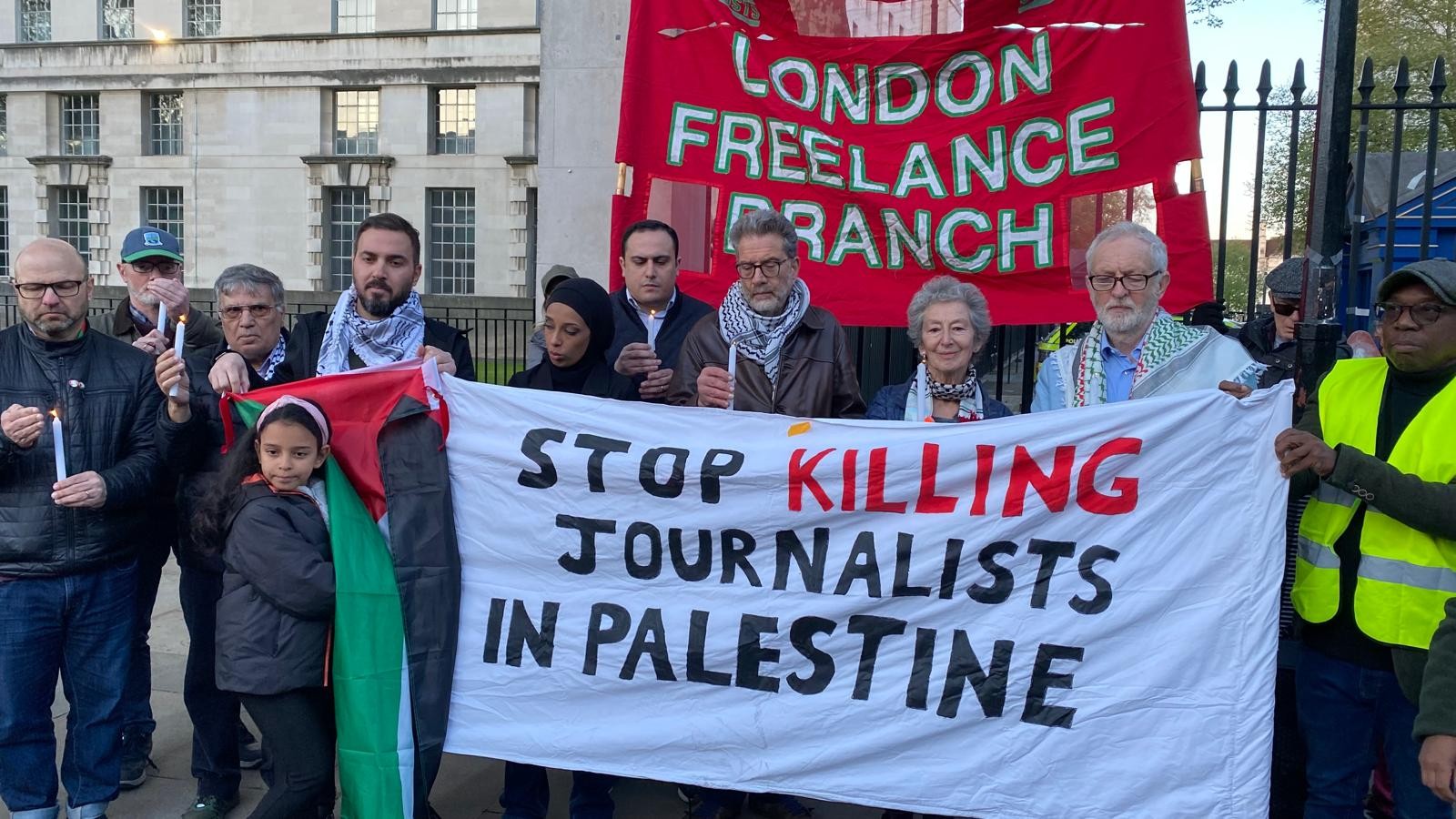 نفذ ناشطون من شتى المنظمات الحقوقية والاتحادات العمالية والأحزاب السياسية البريطانية، مساء الاثنين، اعتصاما احتجاجيا أمام مقر رئيس الوزراء ريتشي سوناك 10 داونينغ ستريت وسط لندن، للمطالبة بوقف عمليات القتل والاستهداف المتعمد التي تطال الصحفيين الفلسطينيين في غزة وداخل الأراضي المحتلة من قبل قوات الاحتلال الإسرائيلي.