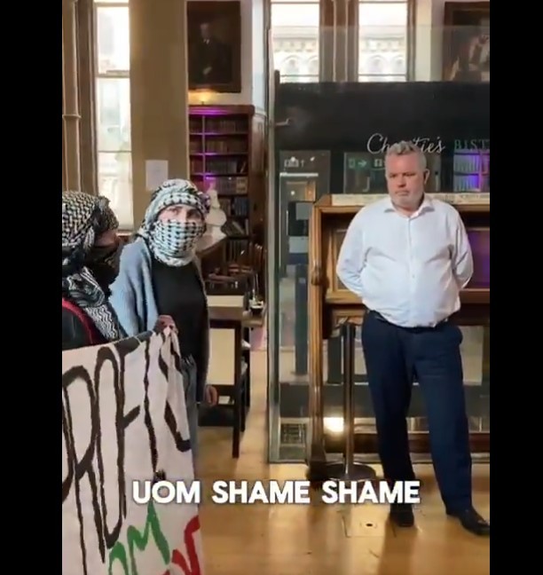 عمد طلاب ينتمون إلى جامعة مانشستر البريطانية إلى اقتحام أحد المباني حيث واجهوا رئيسة الجامعة نانسي روثويل، داعين إياها لتحقيق مطالب الطلاب المعتصمين منذ أيام، تأييدا لفلسطينيي قطاع غزة، ضد ما يتعرضون له من حرب إبادة، وذلك بمقاطعة إسرائيل.