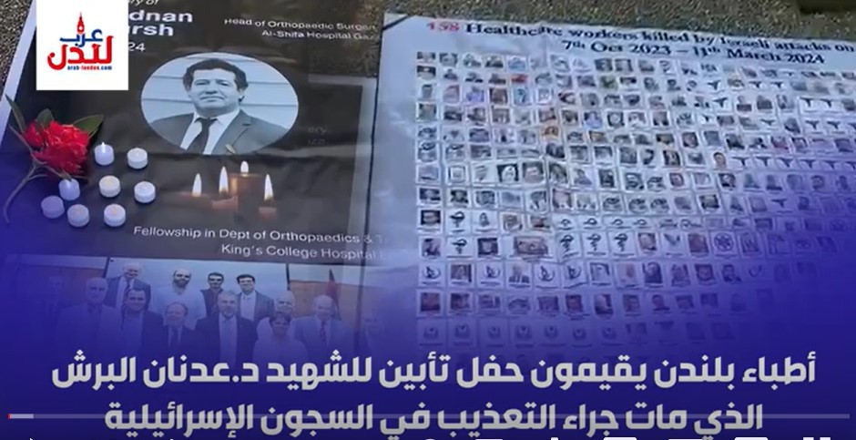 على مقربة من مستشفى "كينغ كولج" جنوب غربي لندن، نظم أطباء وعاملون في قطاع الصحة البريطاني، حفل تأبينٍ مهيب تكريماً لذكرى رحيل زميلهم الطبيب الفلسطيني عدنان البرش الذي قضى شهيدا تحت قسوة التعذيب على يد قوات الاحتلال الإسرائيلي قبل عدة أيام، بعدما اعتقلته من مستشفى العودة شمالي مدينة غزة في شهر كانون الأول/ ديسمبر الماضي.