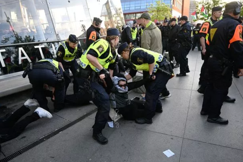شهد الافتتاح النهائي لمسابقة الأغنية الأوروبية في السويد، اصطدامات بين متظاهرين مؤيدين لفلسطين مع شرطة مكافحة الشغب خارج مدخل المكان، وسط مطالبات المتظاهرون بمقاطعة المسابقة بسبب مشاركة إسرائيل.