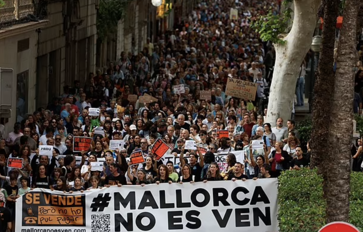وقالت لورا لاو من مجموعة الضغط El Banc de temps Sencelles: "لقد تم شراء المنازل والشقق التي كانت منازل عائلية من قبل المستثمرين الأجانب الذين يؤجرونها للسياح، ولا يتركون شيئًا للسكان المحليين. لهذا السبب وصلت أسعار العقارات في مايوركا إلى مستويات غير ميسورة."