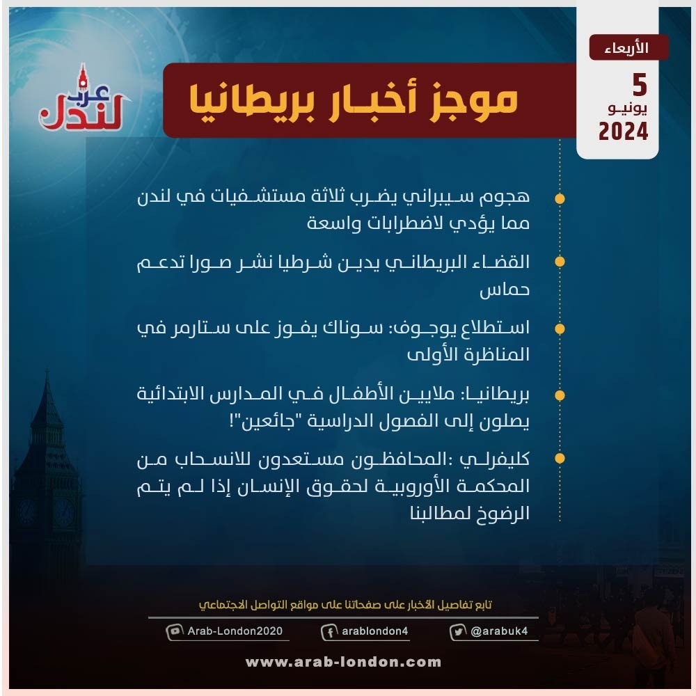 موجز أخبار بريطانيا من منصة عرب لندن/ الأربعاء 5 يونيو / حزيران 2024