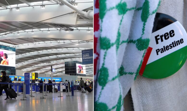 أثار مطار هيثرو البريطاني غضب اللوبي الإسرائيلي عقب ارتداء بعض موظفي الأمن في المطار شارة تحمل العلم الفلسطيني.