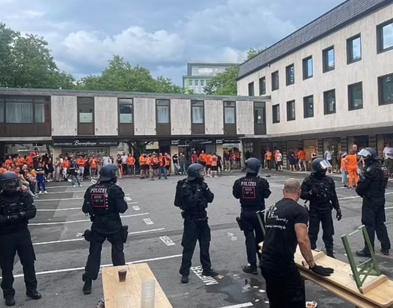 وقالت الشرطة البريطانية إن مجموعات من "المشجعين الخطرين"، معروفة بأنها بين 80 ألف مشجع هولندي، نزلوا إلى المدينة الألمانية، محذرة المشجعين الإنجليز من اللجوء إلى المناطق التي تتواجد فيها الشرطة الألمانية بكثافة.