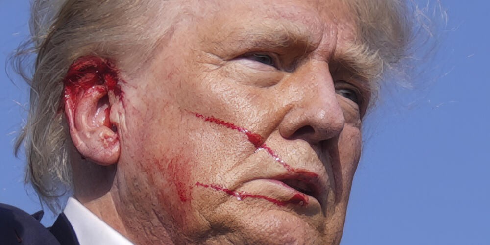 وكان الرئيس السابق، البالغ من العمر 78 عاماً والمرشح لولاية ثانية في البيت الأبيض، قد أصيب في أذنه وتلطخ خده بدمائه بعد عدة طلقات نارية خلال تجمع انتخابي في بنسلفانيا يوم السبت، مما أدى إلى مقتل شخص وإصابة اثنين آخرين بجروح خطيرة.