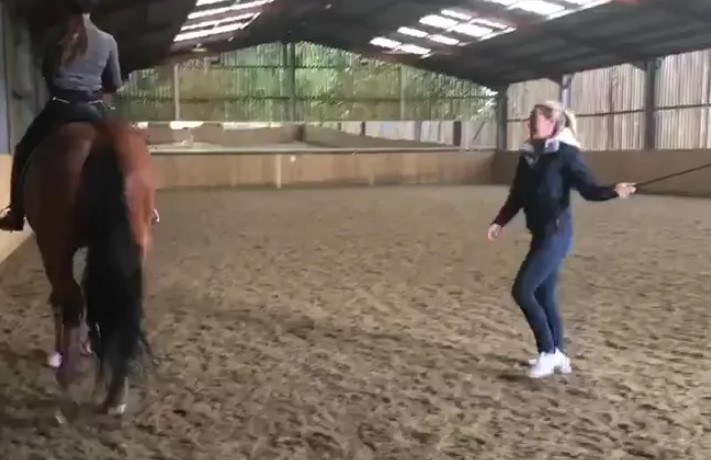 وتبدو دوجاردان في الفيديو، وهي تستخدم السوط عدة مرات لضرب أرجل الحصان خلال جلسة تدريبية في إسطبل.