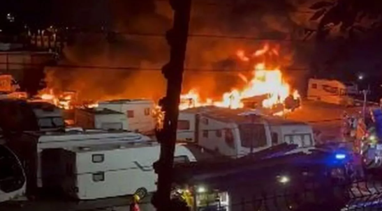 اشتعلت النيران في عدة قوافل في ساحة تخزين في أولدهام مساء يوم أمس السبت، مما عرض عشرات المنازل المتنقلة لخطر الحريق، حيث أفاد السكان المحليون بسماع انفجارات قادمة من المنطقة وشوهدت كمية ضخمة من الدخان المتصاعد إلى السماء بالإضافة إلى ألسنة اللهب التي اجتاحت المكان.