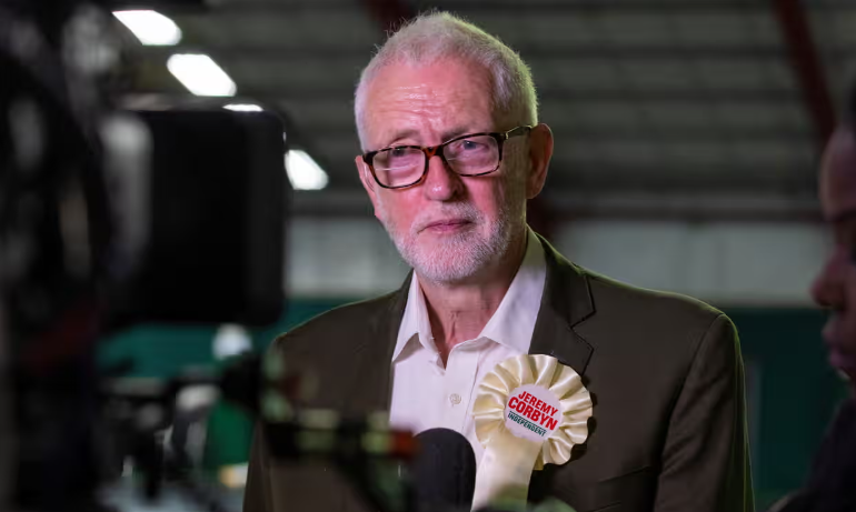 كوربين يلقي خطابًا في اجتماع حول تأسيس حزب يساري جديد في بريطانيا