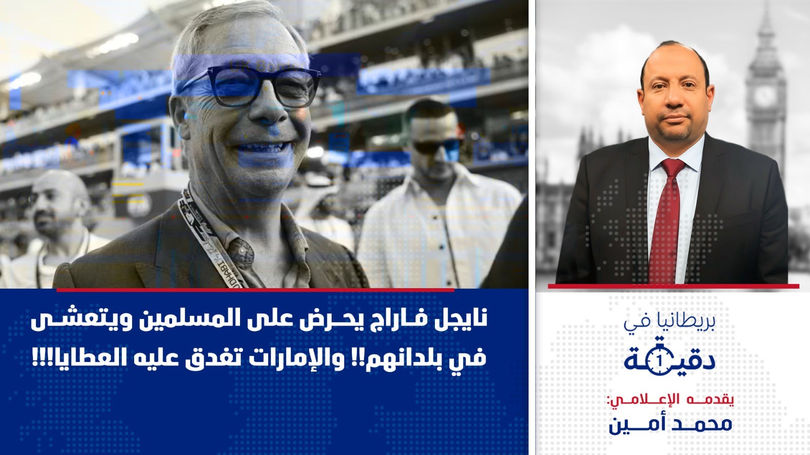 في حلقة جديدة من برنامج “بريطانيا في دقيقة”، تناول الإعلامي محمد أمين زيارة زعيم حزب الإصلاح نايجل فاراج إلى دولة الإمارات، وما أثارته من جدل سياسي وإعلامي واسع.
