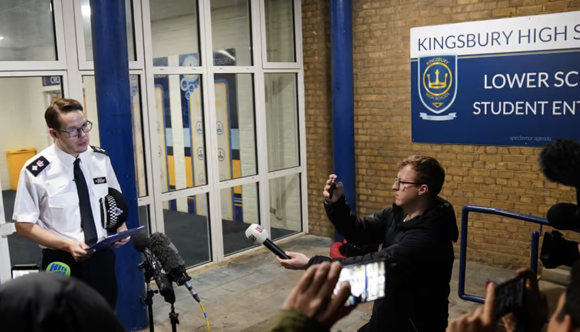 وتلقت الشرطة بلاغاً عصر الثلاثاء عن تعرض طالب للطعن، وعند وصولها عثرت على طالب ثانٍ مصاباً أيضاً. وأكدت أن حالة المصابين خطيرة، وأن المشتبه به ما زال قيد الاحتجاز للتحقيق. وأوضح قائد الشرطة في شمال غربي لندن، المحقق لوك ويليامز، أن الفتى أُلقي القبض عليه بعد تحريات عاجلة، وتم ضبط سلاح يُعتقد أنه استُخدم في الاعتداء.