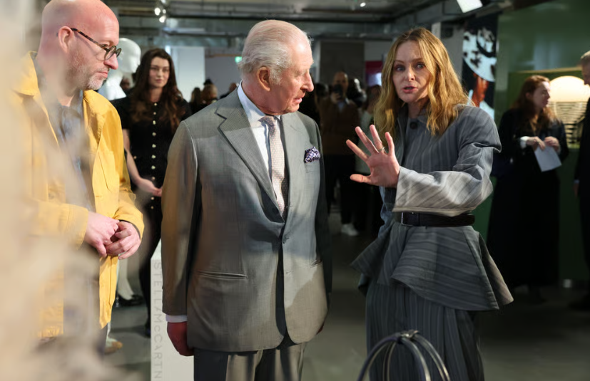 ووفقًا لموقع صحيفة “ستاندرد” The Standard، تبادل الأمير تشارلز الدعابات والضحكات مع مصممة الأزياء ستيلا مكارتني خلال عرض مجموعتها للأزياء المستدامة، وأظهر ارتياحًا أثناء لقاء المبدعين في منصات عرض ملابسهم. وقد استقبلت مكارتني الملك بقبلة، وتحدثت معه عن والدها، عضو فرقة البيتلز السابق السير بول مكارتني، مازحةً: "إنه بخير، عليكما قضاء بعض الوقت معًا".