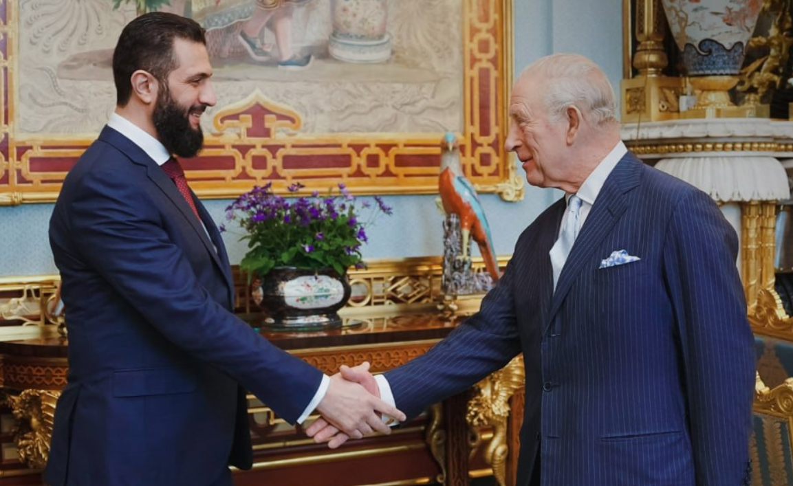 التقى الرئيس السوري أحمد الشرع، يوم الثلاثاء، الملك تشارلز الثالث ملك المملكة المتحدة في قصر باكنغهام بلندن، حيث بحثا سبل تطوير التعاون بين البلدين بما يخدم المصالح المشتركة. وأعرب الملك تشارلز الثالث عن دعمه لسوريا وتضامنه مع الشعب السوري في جهوده لإعادة بناء دولته.