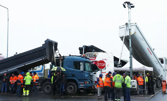 وامتدت الاحتجاجات، التي يقودها سائقو الشاحنات ومقاولون زراعيون منذ الثلاثاء، من قوافل بطيئة على الطرق السريعة إلى إغلاق مواقع استراتيجية لتخزين الوقود، ما أثر على نصف إمدادات البلاد تقريبًا، بما في ذلك مستودعات في غالواي وفوينز بمقاطعة ليمريك.