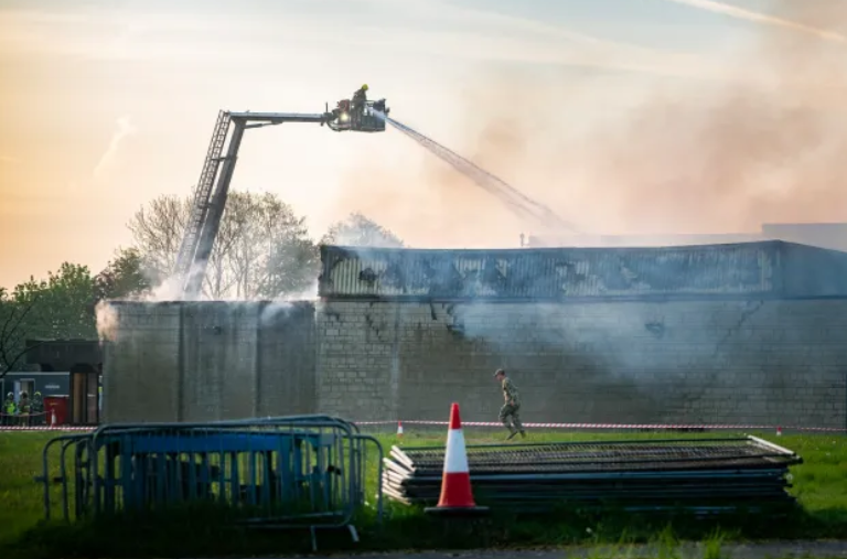 وأفادت السلطات باندلاع الحريق فجر الأحد في قاعدة RAF Fairford التابعة لسلاح الجو الملكي البريطاني، والتي تُستخدم ضمن أنشطة عسكرية مشتركة مع الجانب الأمريكي.